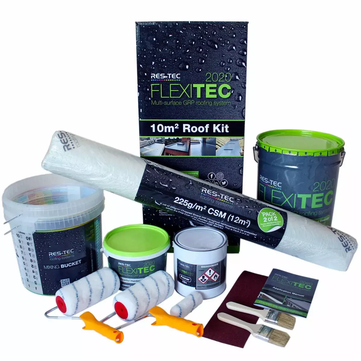 Flexitec 2020 is a flexible and seamless GRP system that combines the durability of fibreglass systems with the versatility of overlay systems. It can be applied to almost any roof surface, and once installed, can be walked over in just 30-60 minutes. Flexitec 2020 range includes resin, resin accelerator, primer, primer accelerator, powder hardener & more.