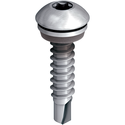 The EJOT Self Drilling Screw JT3 FR 2H Plus 5.5 is an A2 stainless steel bi-met fastener for fixing profiled roofing and cladding sheets to steel and aluminium sections.
