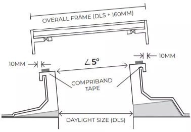 When purchasing a Skyvu lantern  unit, the size you choose needs to represent the dimensions  from the external edge of the kerb. Please ensure that you have upstands of a minimum of 100mm wide.